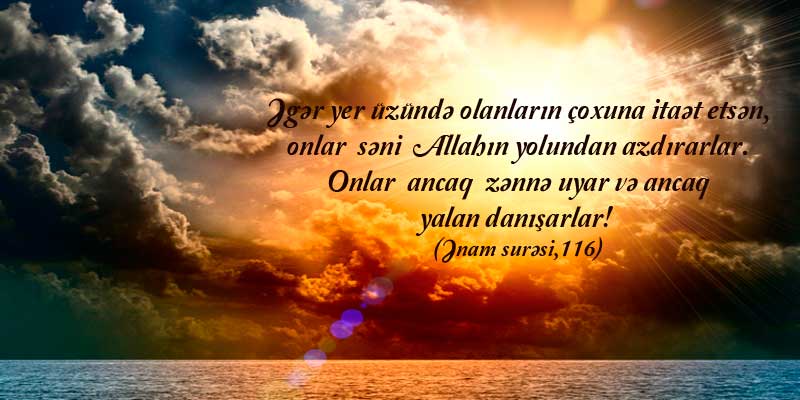 ...Allahın onlara verdiyi ruzini Allaha iftira ataraq haram edənlər, şübhəsiz ki, ziyana uğramışlar. Həqiqətən, onlar azmış, doğru yolu tapa bilməmişlər. (Ənam surəsi, 140)